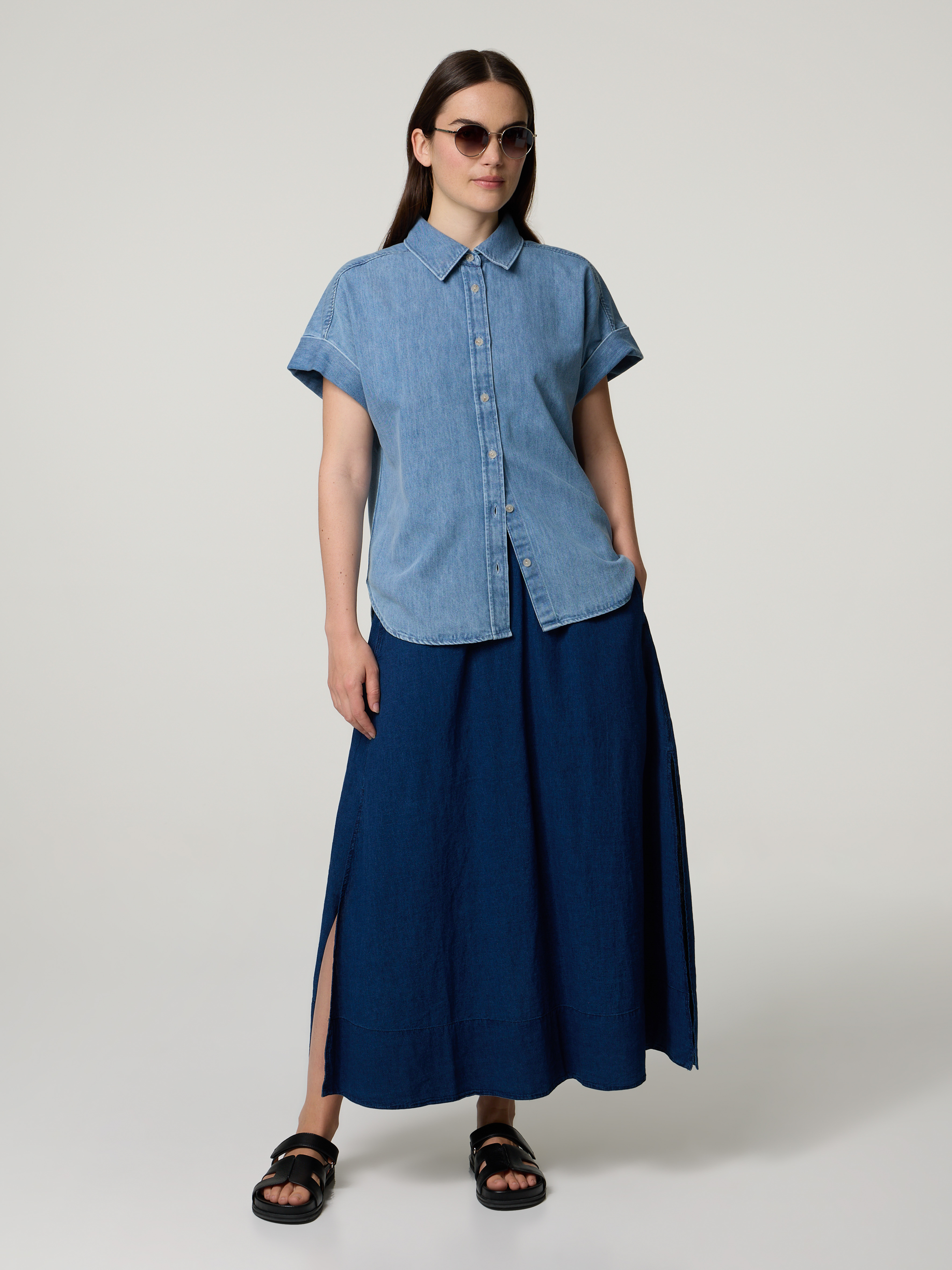 Midijupe mit Leinen SLIT