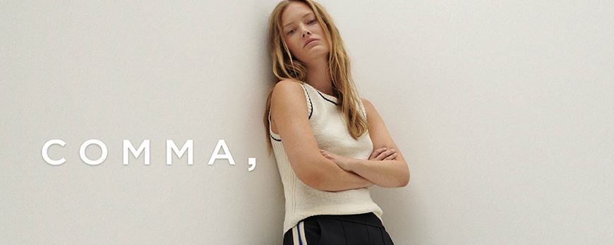 Comma ist ein im Jahre 1973 gegründetes Fashion-Unternehmen mit dem Ziel, feminine Mode für jede Gelegenheit zu kreieren. Dabei werden aktuelle Trends aufgegriffen und Modeklassiker neu interpretiert, um sowohl Business-Outfits als auch Alltags- und Anlassmode an die moderne, feminine Frau zu bringen. Comma steht zudem für höchste Premium-Ansprüche bei gleichzeitig attraktiven Preis-Leistungs-Verhältnissen. Nachhaltigkeit wird bei Comma ebenfalls grossgeschrieben. Artikel mit dem WE CARE-Label werden mit umweltschonenden Herstellungsverfahren aus nachhaltig zertifizierten oder recycelten Fasern produziert. „We care. For people, the planet and the future.“