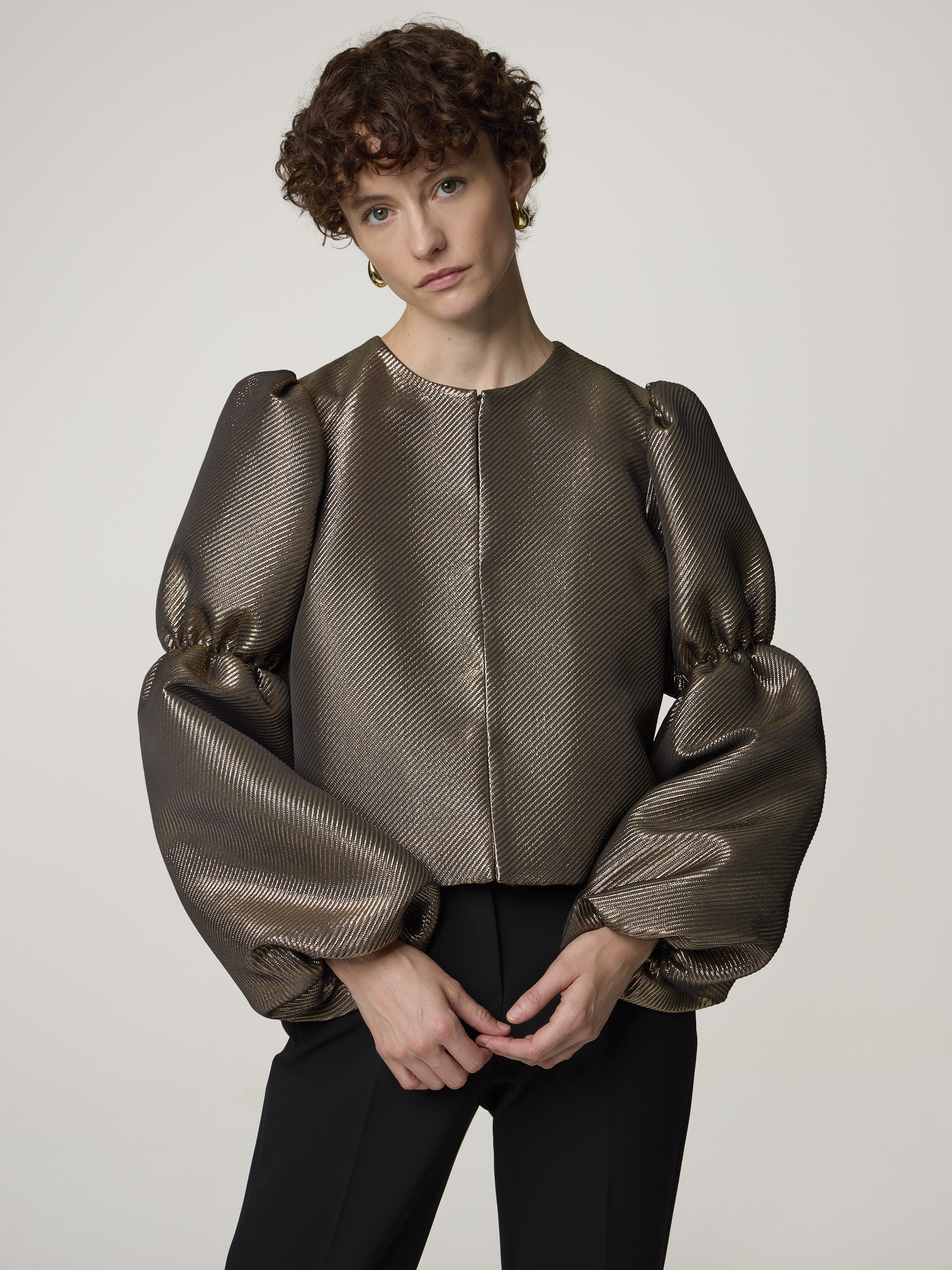 • Bluse mit doppelten Puffärmeln und Gummizug an den Armen