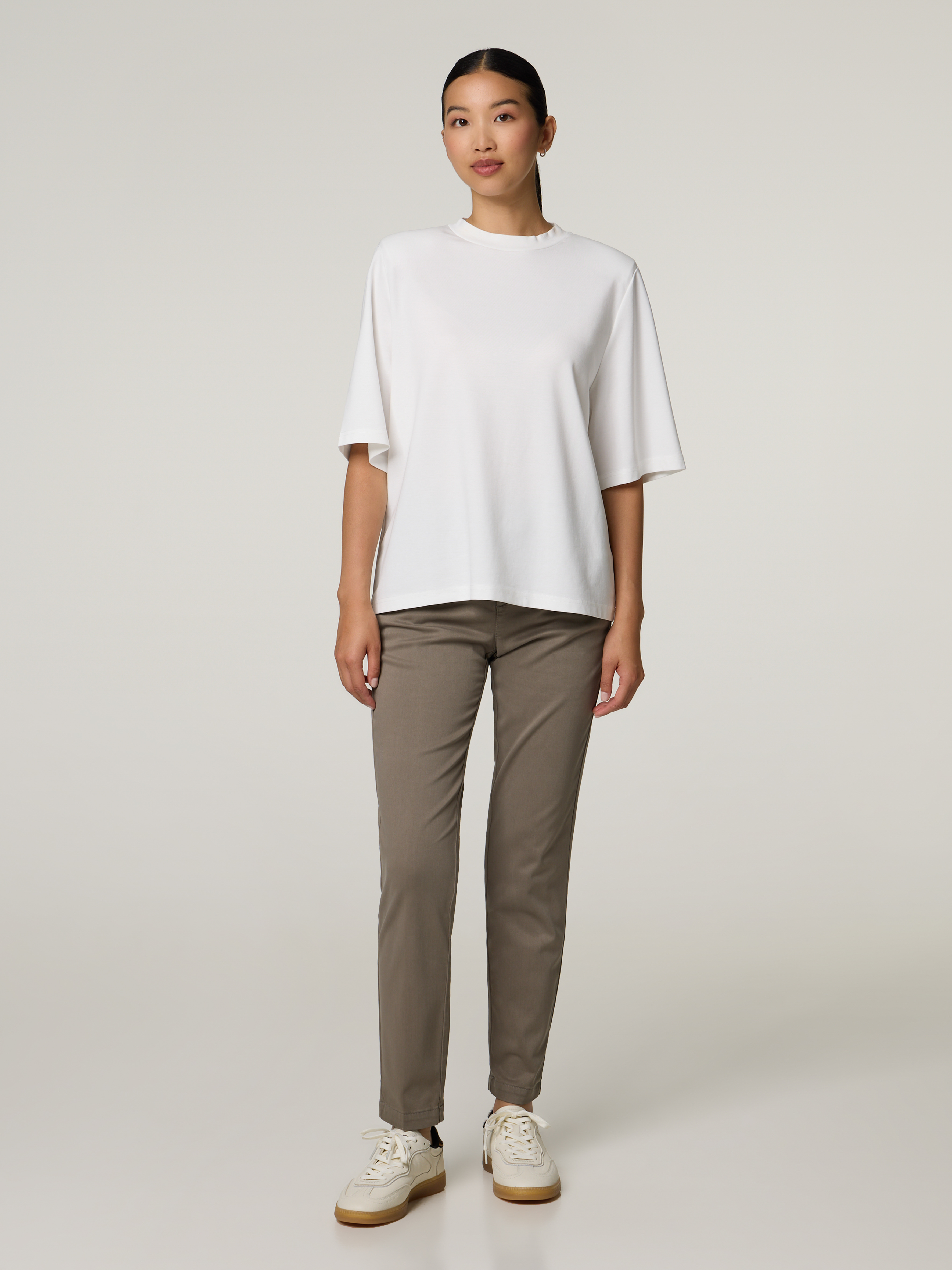 Unser Model misst 174 cm und trägt Grösse 34.