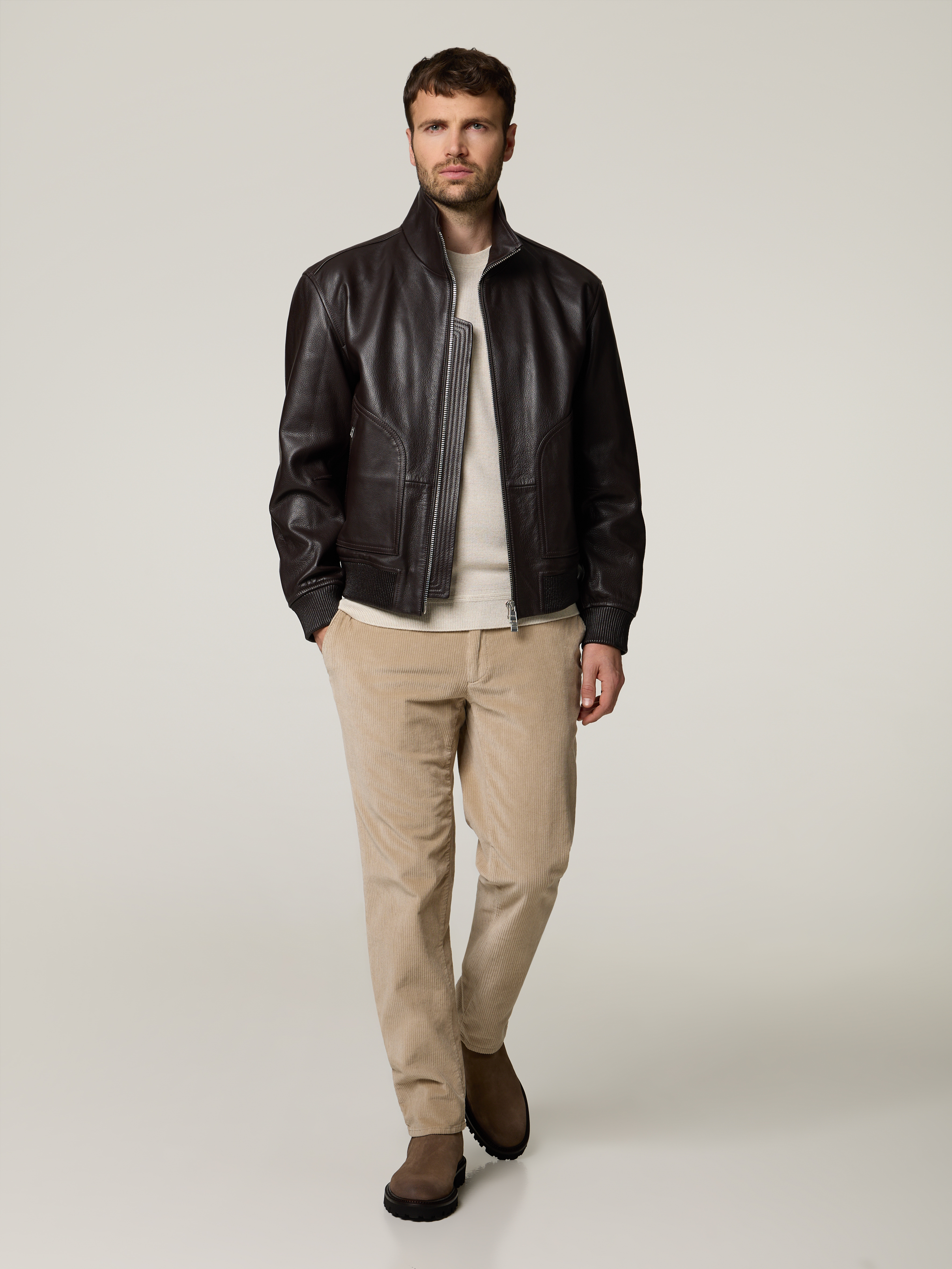 Unser Model misst 186 cm und trägt Grösse 34/32.