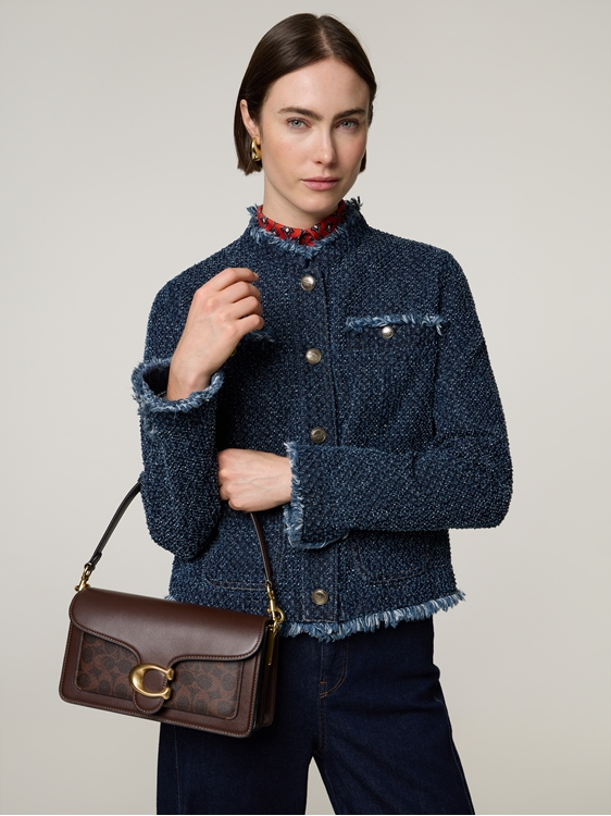 • Aus Baumwoll-Denim in edler Tweed-Optik