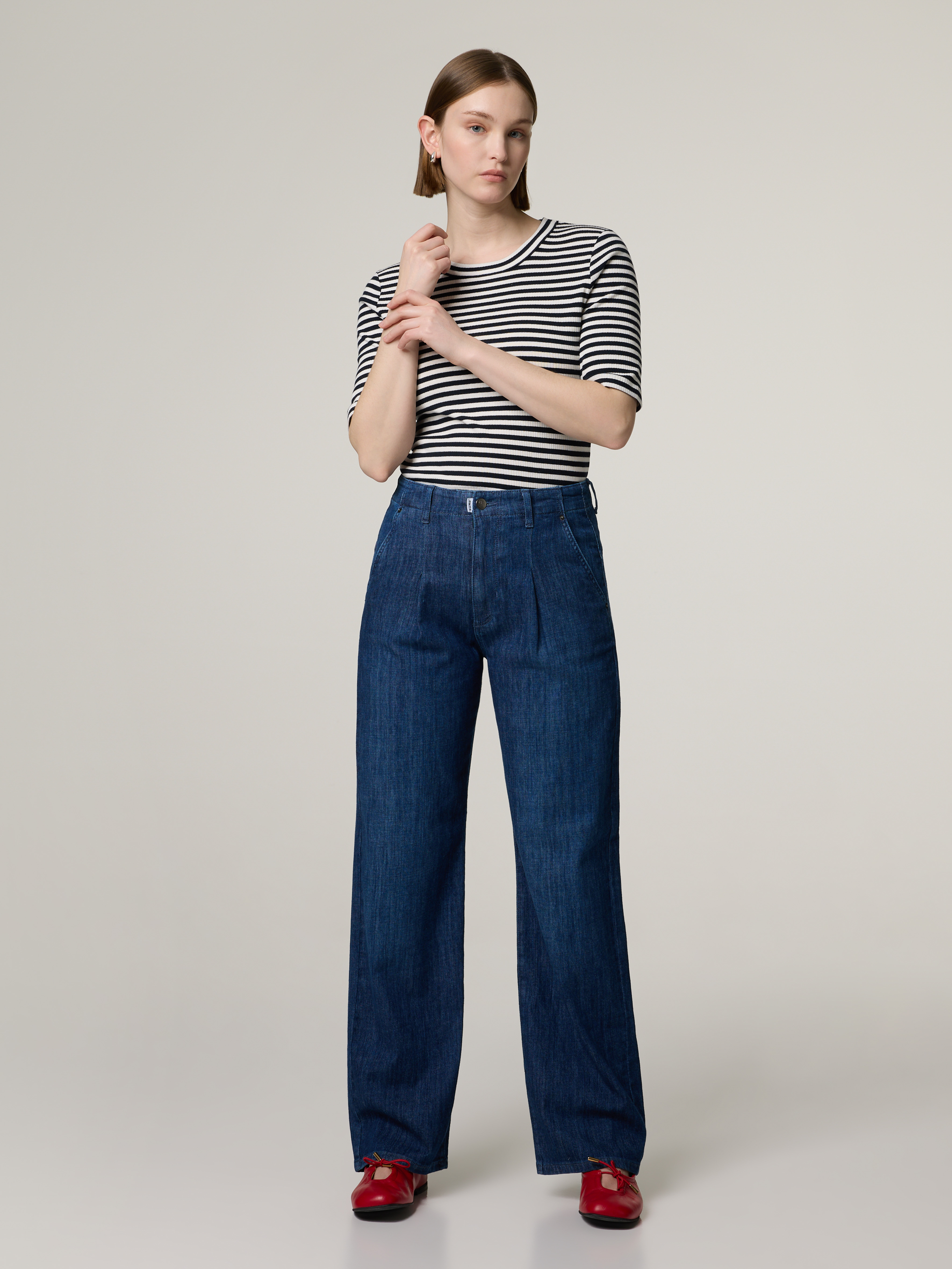 Unser Model misst 174 cm und trägt Grösse 27.