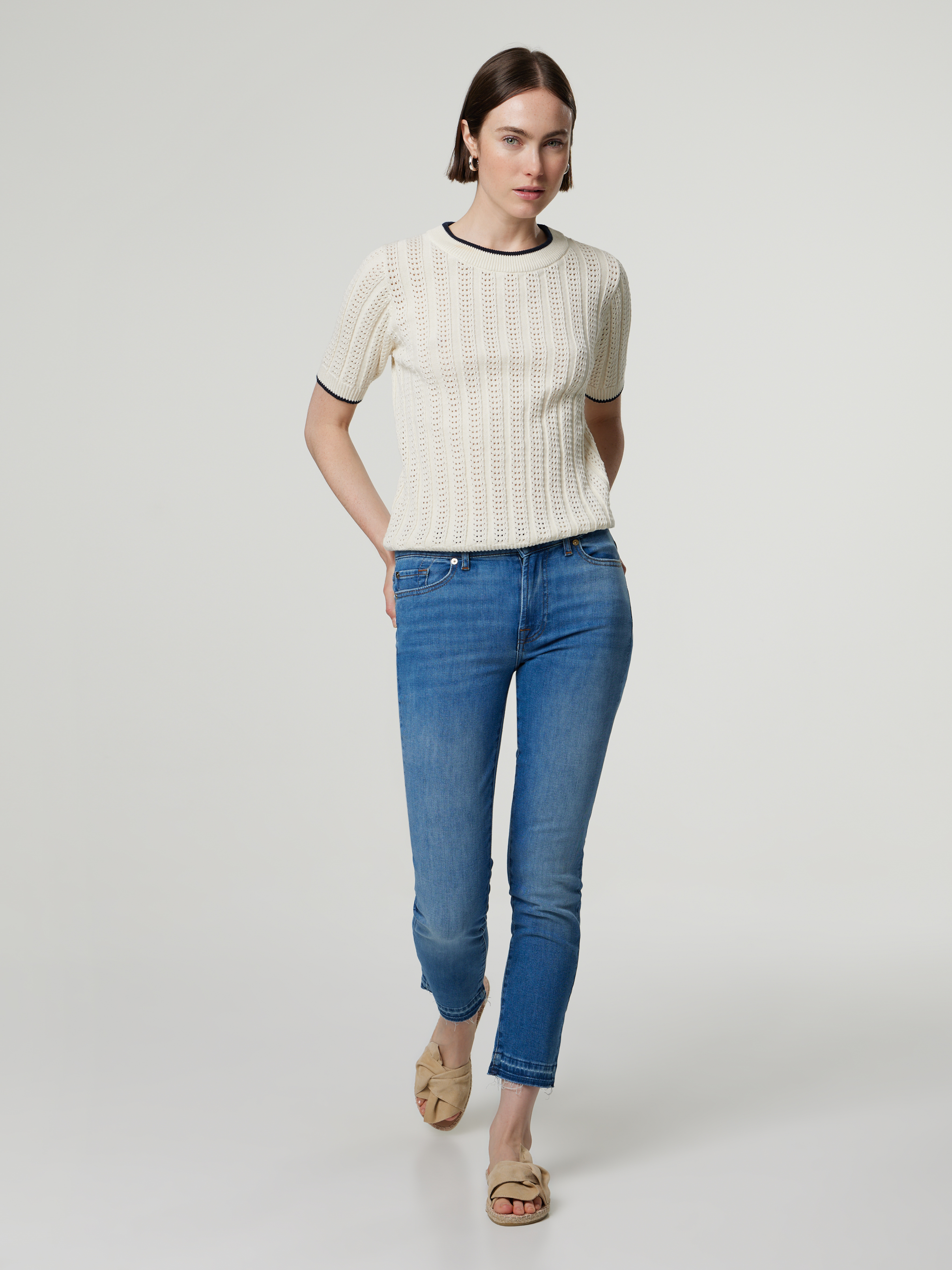 Unser Model misst 176 cm und trägt Grösse 27.