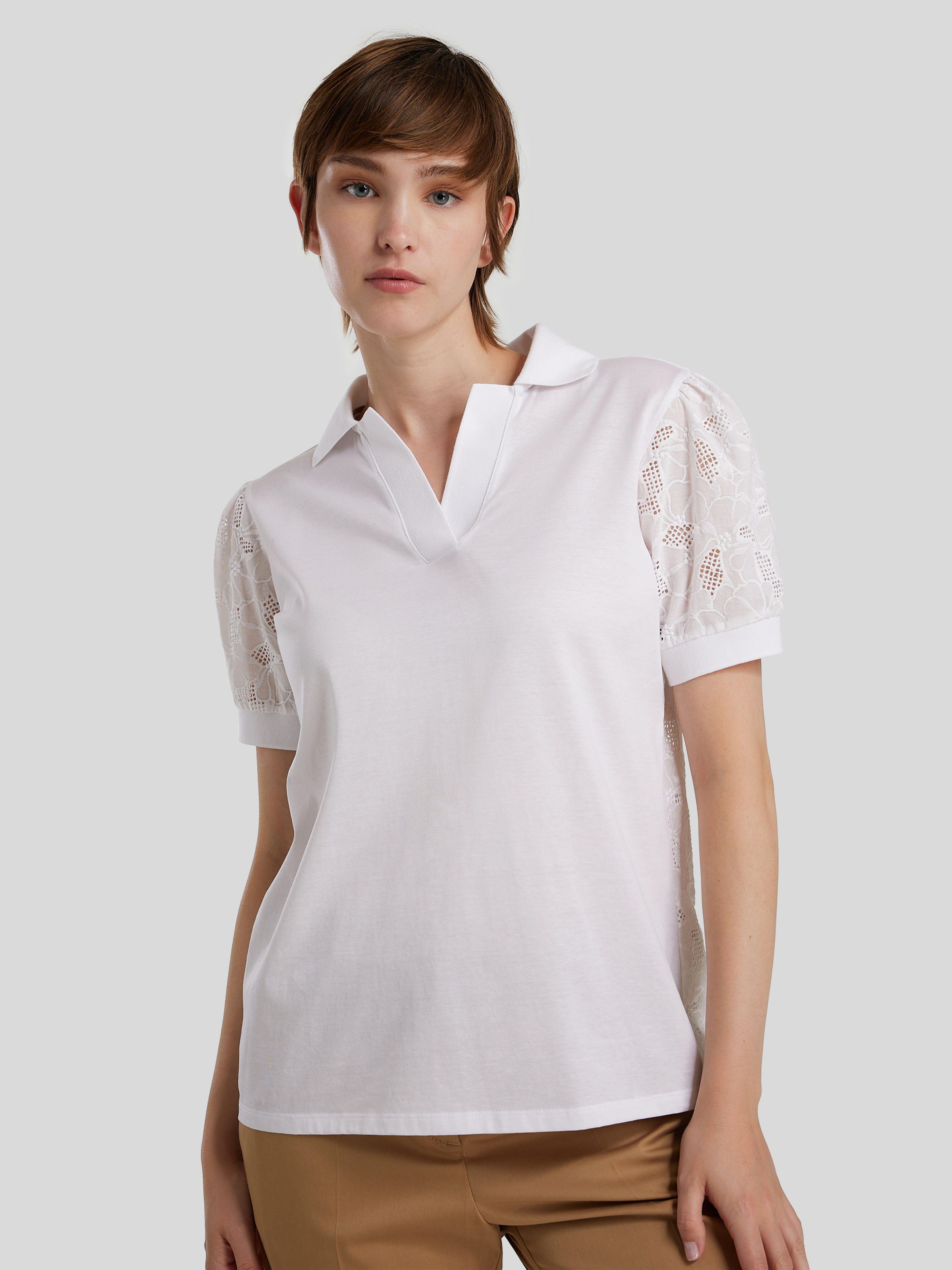 Polo-Shirt mit Spitzen-Detail