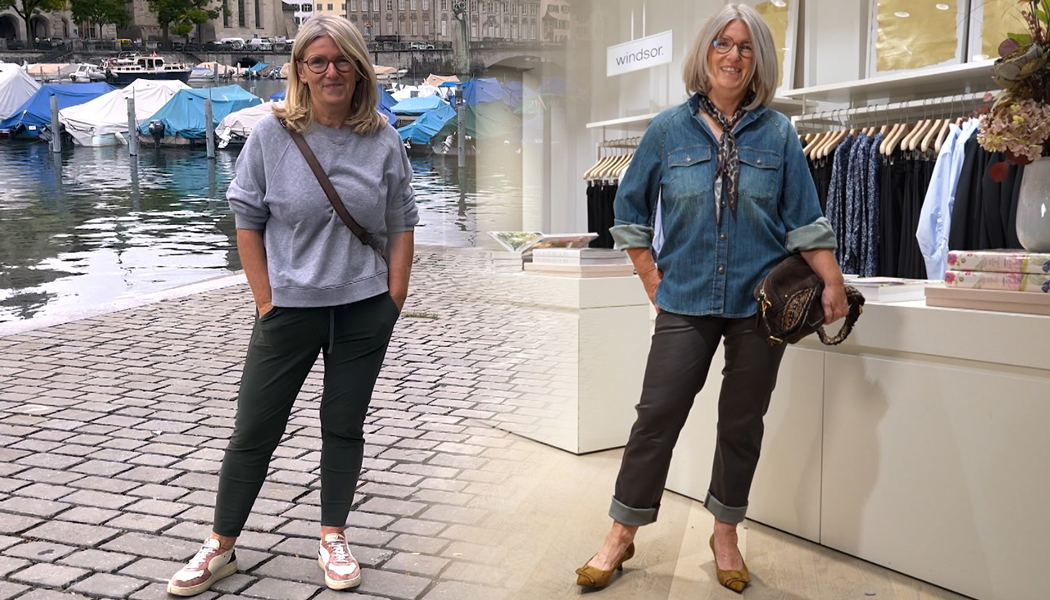 Im PKZ WOMEN erhält Heidi nun ihr Fashion-Makeover genau nach ihren Vorstellungen im Casual-Chic Stil. Die Trendfarben des Herbstes setzen Akzente, beginnend mit einem braunen T-Shirt von DRYKORN, das sich als vielseitiger Kombinationspartner erweist. Darüber legt Luisa Rossi einen Blazer mit Fischgratmuster und kombiniert dazu eine Jeans im Skinny Fit. Die Loafer von Castellano ersetzen den Sneaker als elegante Alternative und harmonieren perfekt mit der Burgundy-Tasche von COACH. Ein leichter Wollmantel, der das Grau wieder aufgreift, komplettiert das Ensemble.
