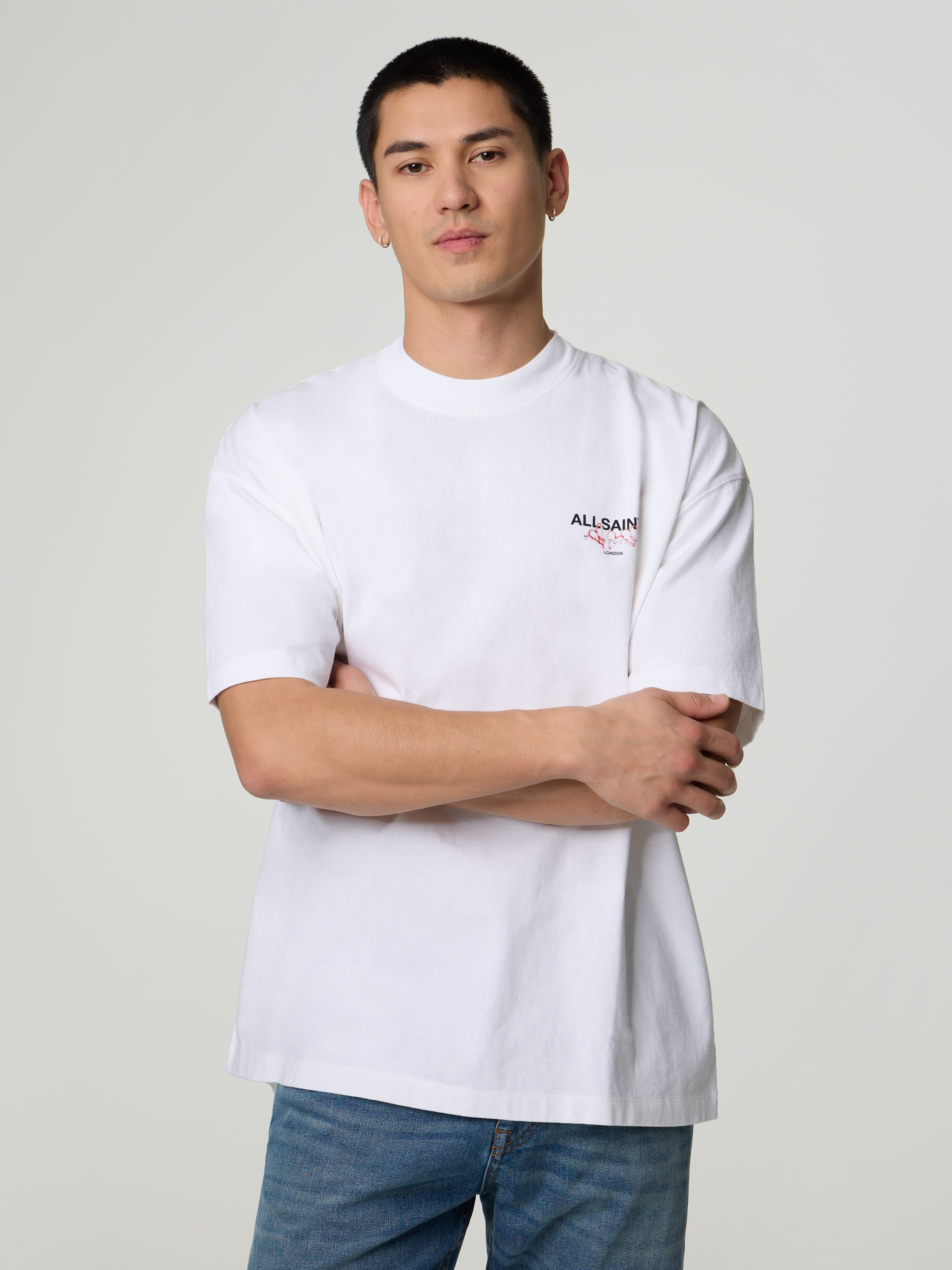 Die gelassene Attitüde von AllSaints steht im Mittelpunkt jedes einzelnen ihrer Designs. Lockere Passformen, sportliche, aber dennoch hochwertige Materialien und zum Teil mutige Prints. Die Farbpalette ist eine einfache Mischung aus Grau und Beige wobei die Aufmerksamkeit auf den Silhouetten der punk-inspirierten Stücke gelegt wird. Destroyed Jeans, grobe Strickteile, überfärbte und gewaschene Casual-Pieces und edle Leder arbeiten alle zusammen, um den für AllSaints typischen Stil zu kreieren. Der Schädel ist ein Markenzeichen auf bedruckten T-Shirts, ebenso wie das Widderschädel-Logo, das auf allen Feinstrickteilen zu finden ist.