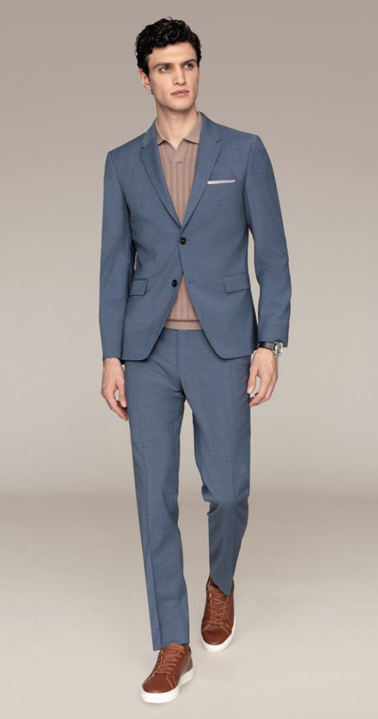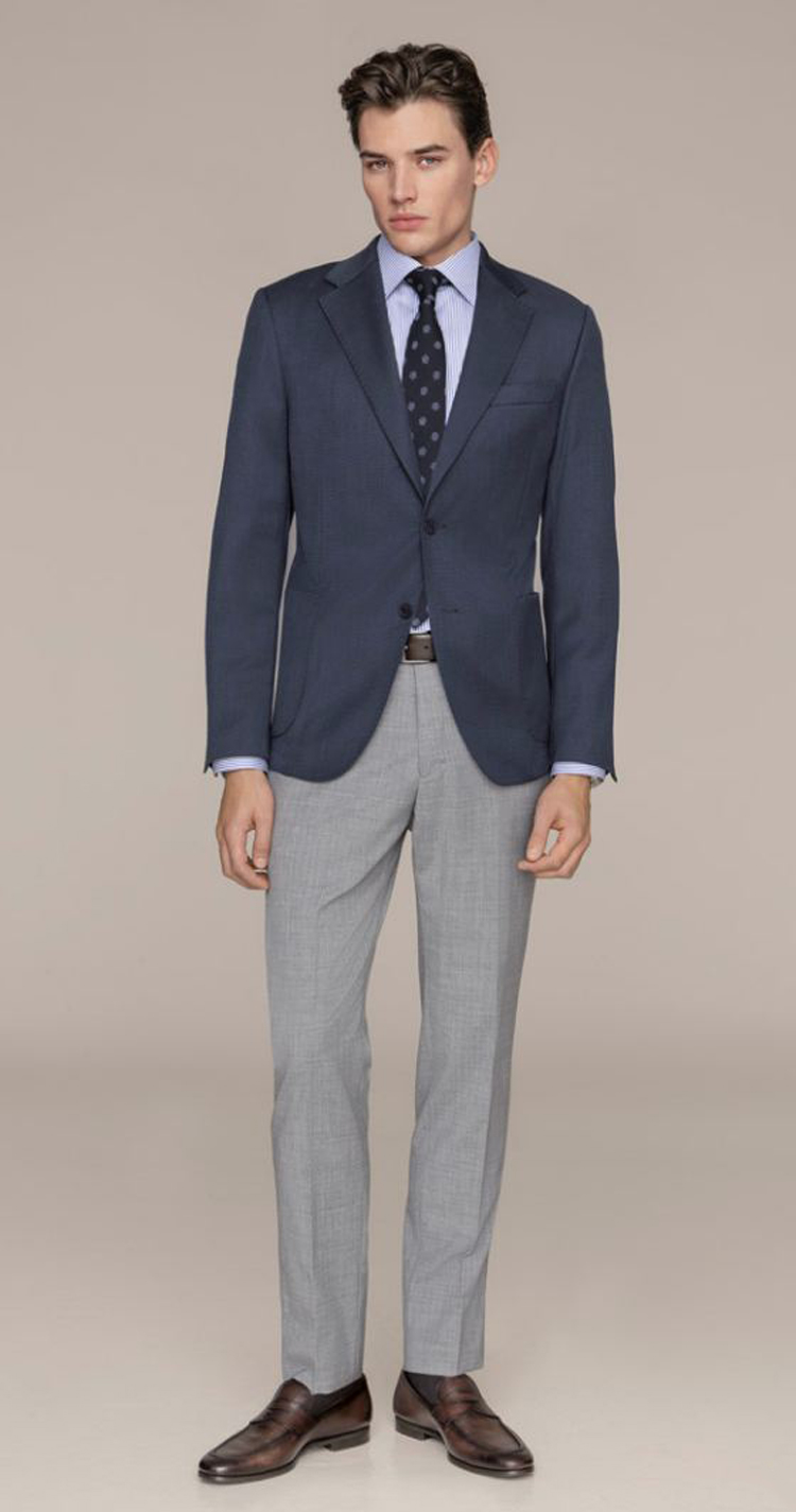 Par rapport au style business, le semi-formel est plus relax: porté avec un costume ou un veston associé à un pantalon business ou un chino de qualité, il permet d’opter pour une chemise à motifs discrets, un polo élégant en tricot, un beau t-shirt ou un pull à col rond en coton ou en laine mérinos, dans des tonalités sobres. Les mocassins ou les baskets en cuir lisse ou en daim sont également d’excellentes alternatives aux chaussures traditionelles à lacets telles que les richelieus ou les derbies.