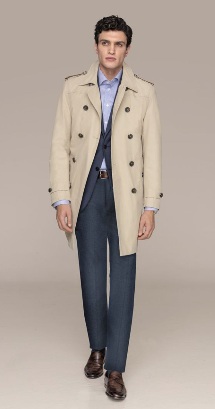 Le style conventionnel: sérieux, professionnel, élégant et sans extravagance. Il comprend un costume – deux ou trois pièces – de haute qualité en bleu marine, gris moyen ou anthracite, et une chemise assortie de couleur neutre. Des chaussures en cuir ciré ou des mocassins noirs, brun foncé ou bordeaux, une ceinture coordonnée, une pochette en soie ou en coton d’excellente facture et, selon la situation, une cravate soigneusement nouée complètent la tenue. Privilégiez une coupe parfaite, des silhouettes modernes et des matières de qualité supérieure.