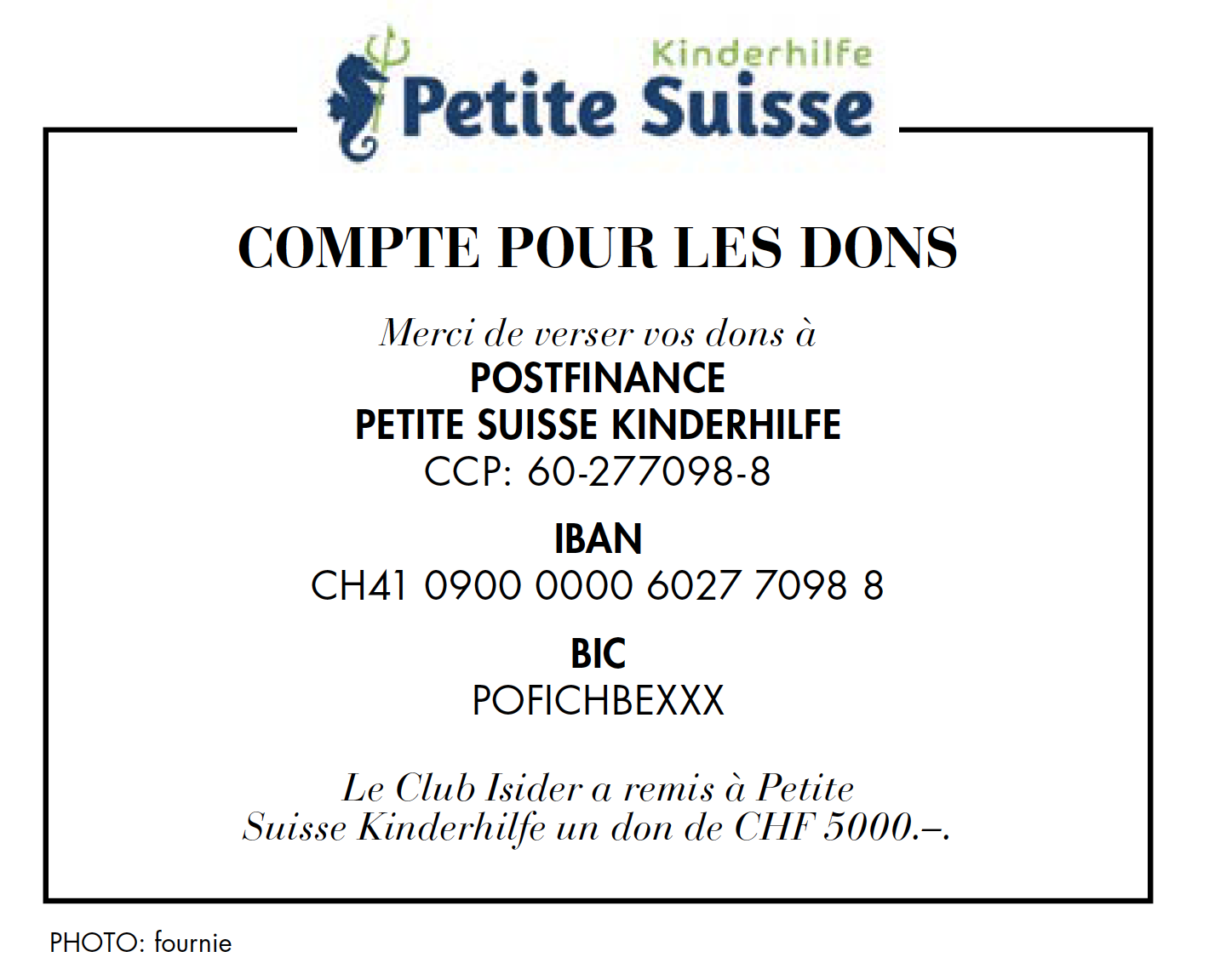 Petite Suisse Kinderhilfe s’est donné pour mission d’offrir aux enfants et aux jeunes qui se trouvent dans une situation de vie dif  cile des excursions gratuites pour leur procurer des moments de bonheur et d’insouciance et leur ouvrir de nouvelles perspectives.